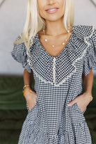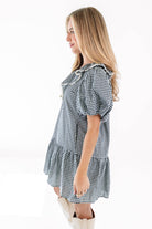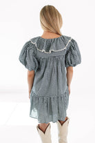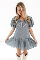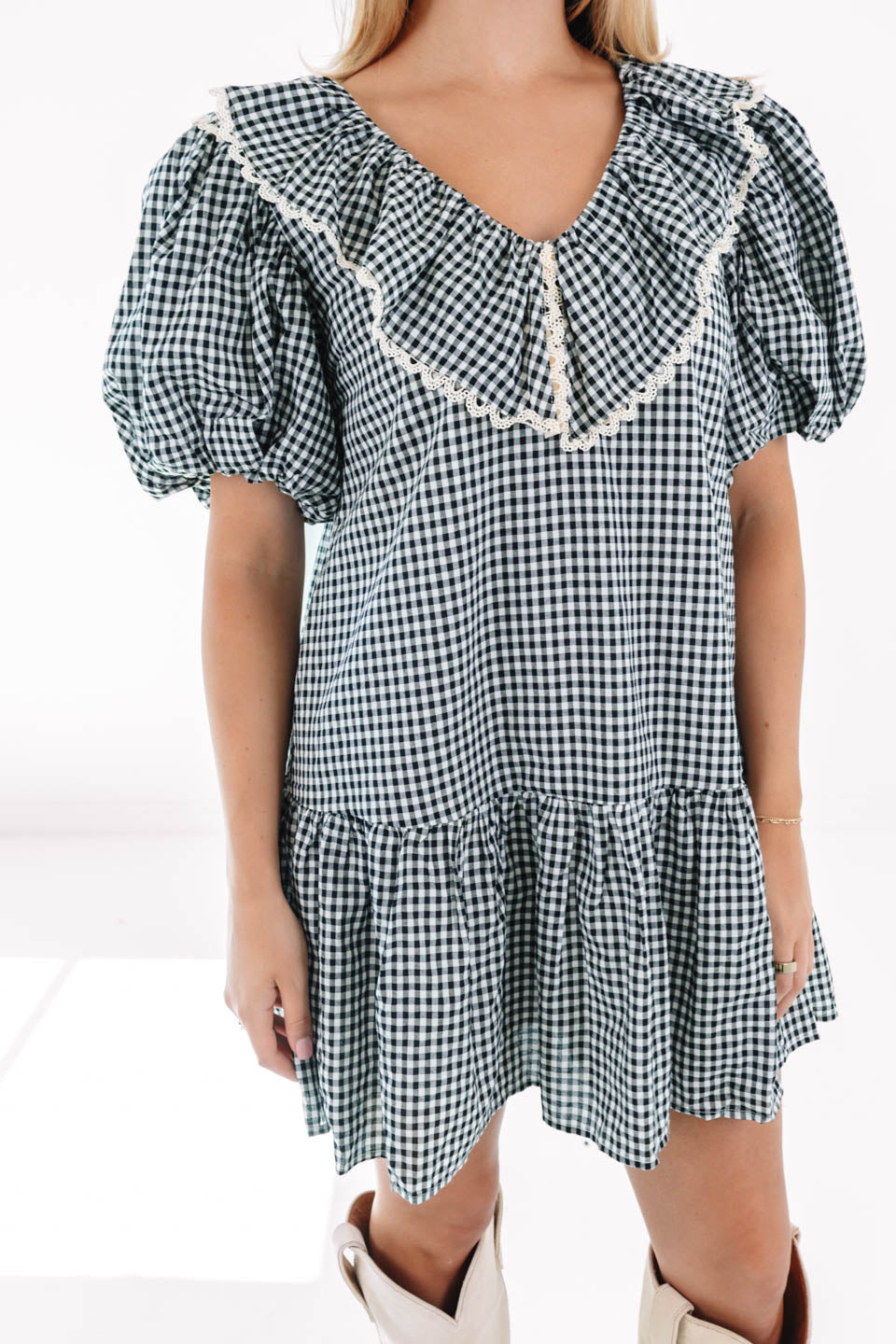 This gingham mini is serving picnic-chic perfection with its puff sleeves and sweet lace-trimmed collar. The playful drop waist and bow detail make it effortlessly cute with just the right touch of vintage charm. Pair it with sneakers or boots—either way, you’re the main character at every fall outing.