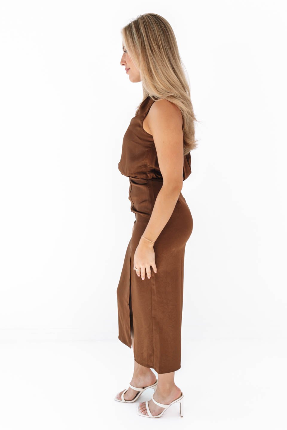 Silky Beauty Midi Dress - Brown