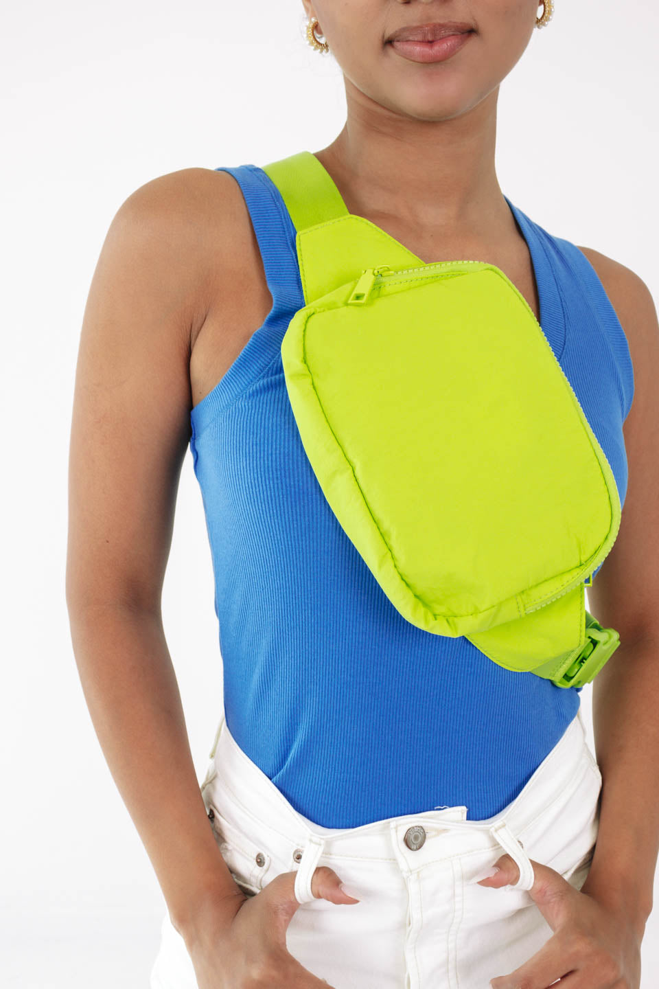 Brighten up your ensemble with this vibrant lime-colored belt bag, the perfect pop of color for any outfit. Its hands-free design and adjustable strap make it as functional as it is stylish, ideal for keeping your essentials close. Whether you're exploring the city or dancing at a festival, this bold accessory adds a fun twist to your look!