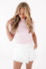 Soft as cotton candy and just as sweet, this blush pink fuzzy top is your cozy-chic go-to for breezy days or flirty nights out. With a snug mock neck and ribbed sleeves, it's giving all the vintage vibes with a modern twist. Pair it with a cute skirt or your favorite jeans and you're ready to steal hearts (and compliments).