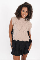- La modelo mide 5'6" y lleva una talla pequeña.