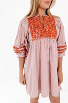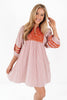 This dress is your go-to for tailgates, touchdowns, and turning heads! With bold orange embroidery and breezy stripes, it’s perfect for showing off school spirit in style. Pair it with boots and your game face — it’s time to rally!