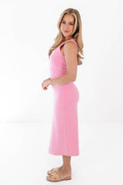 This chic pink midi dress is serving effortless elegance with a touch of playfulness! The soft, body-hugging fit flatters every curve, while the pearl-trimmed neckline adds just the right amount of charm. Perfect for brunch dates, summer strolls, or whenever you want to turn heads with minimal effort!