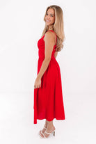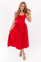 Turn heads and steal hearts in this fiery red dress that’s equal parts flirty and fabulous. With a ruched bust and twirl-worthy skirt, it’s made for dancing through date nights and sunny strolls. Add your favorite heels or sneakers—either way, you’re the main character.