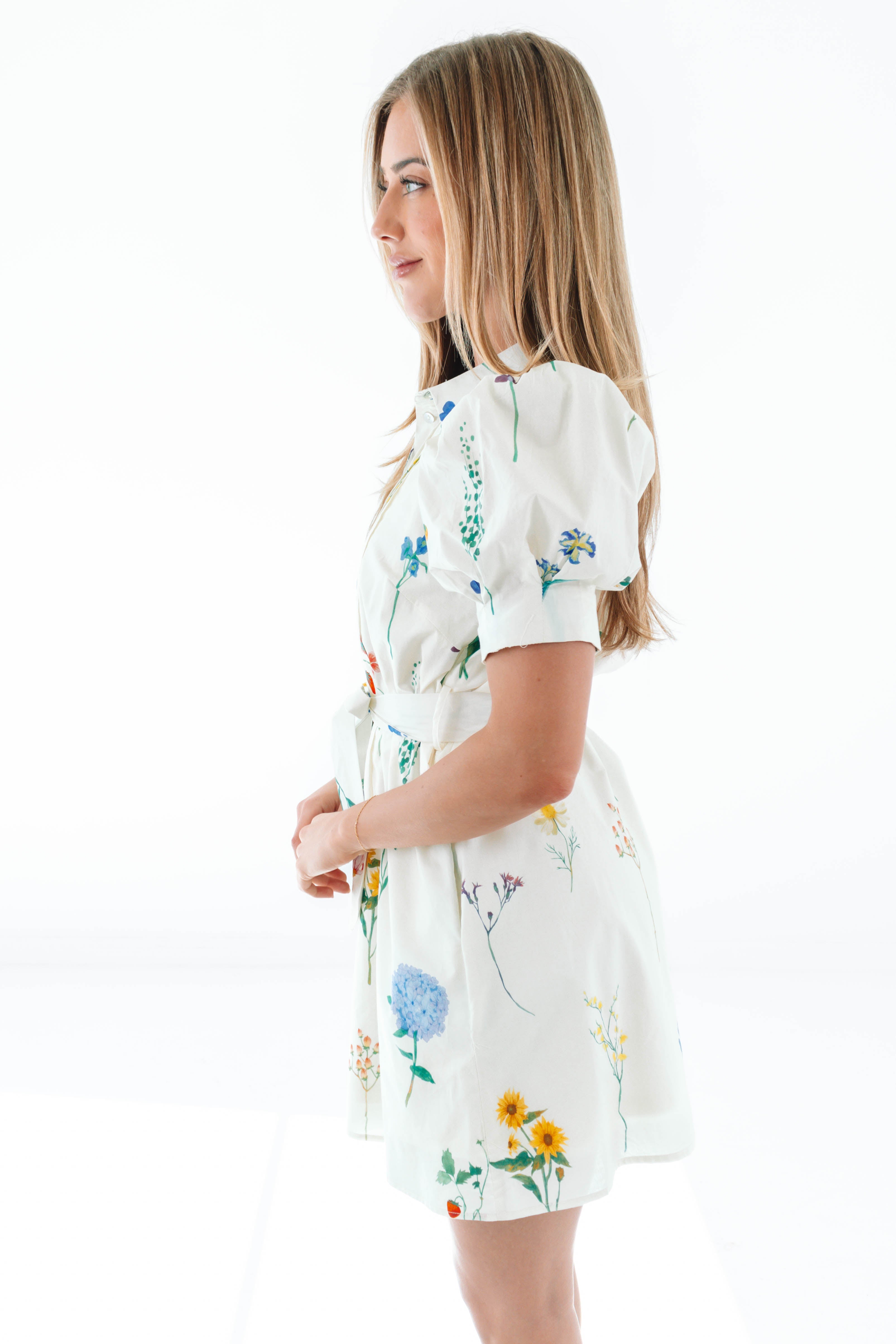 Sweet, flirty, and effortlessly charming, this floral mini dress is made for sunshine-filled days. The puff sleeves and dainty collar add a touch of vintage romance, while the tie waist cinches you in just right. With its breezy fit and handy pockets, it’s ready for brunch dates, garden parties, and everything in between.