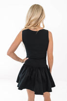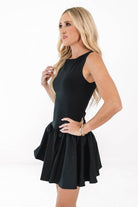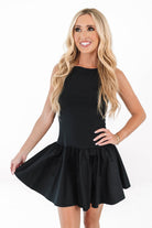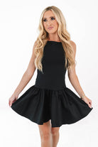 Flirty, fun, and made for twirling—this little black dress is your go-to for girls' night out or spontaneous date nights. The fitted bodice flows into a playful ruffled skirt that brings the drama in the best way. Just add heels and you're ready to own the evening!