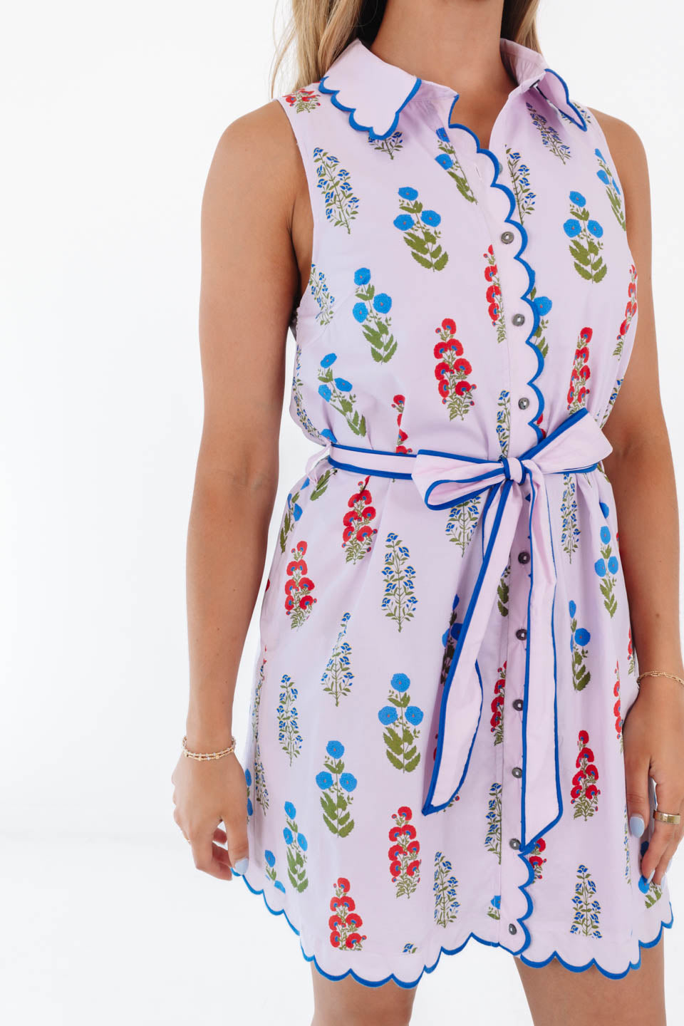 This sweet sleeveless dress is giving major garden party vibes with its floral print and scalloped trim! The blue tie belt cinches the waist just right, adding a pop of charm to the breezy silhouette. With pockets to stash your sunnies or snacks, it's basically summer perfection in dress form!