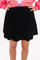 This black pleated velvet skirt is a holiday dream, blending plush texture with a festive, twirl-worthy design! Its deep hue and soft, velvety feel make it perfect for making merry and bright statements. Dress it up with sparkles or keep it cozy with a knit sweater—either way, it’s a guaranteed showstopper!