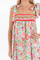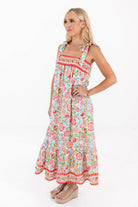 This dress is like a scoop of rainbow sherbet on a summer afternoon—bright, sweet, and impossible not to smile at. The playful shoulder bows and breezy silhouette make it perfect for picnics, porch swings, or pretending you're in a vintage romance film. Just add sunshine and you're all set!