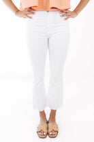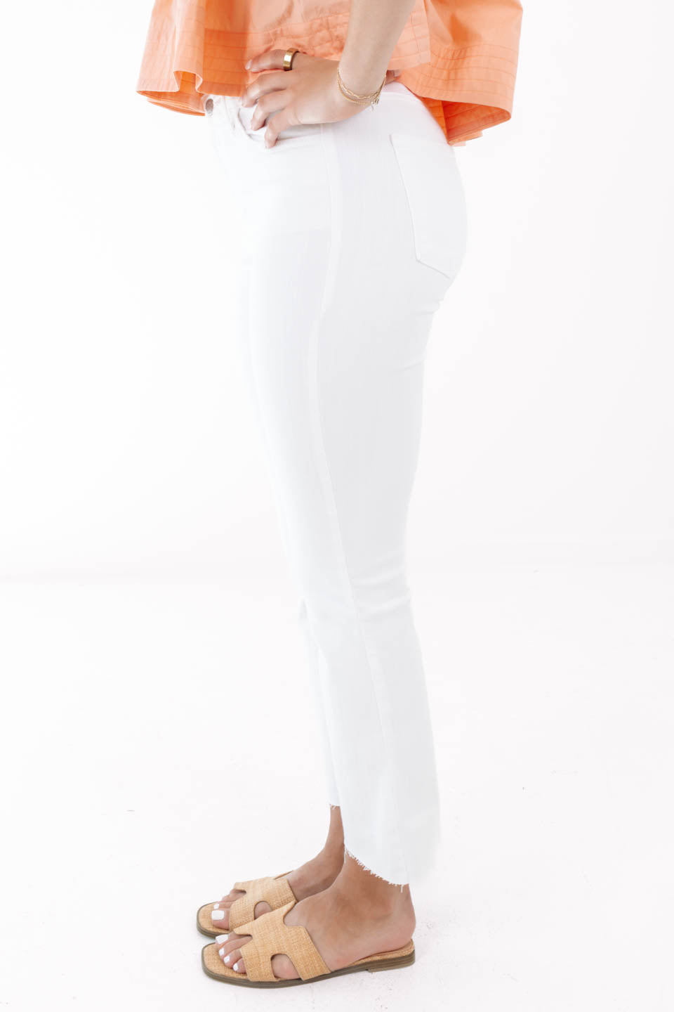 Step into effortless chic with these high-waisted white jeans that hug in all the right places and flare just enough for that trendy kick. The raw hem adds a touch of laid-back charm, perfect for pairing with your favorite sandals or sneakers. Whether you're brunching with friends or strolling the boardwalk, these jeans will keep you looking fresh and stylish all day long!