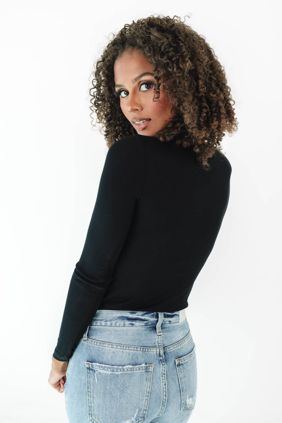 Simple, sleek, and seriously versatile—this black long-sleeve top is a closet hero. The fitted silhouette makes it perfect for layering or standing strong on its own. It’s the kind of piece that makes any outfit look effortlessly put together.