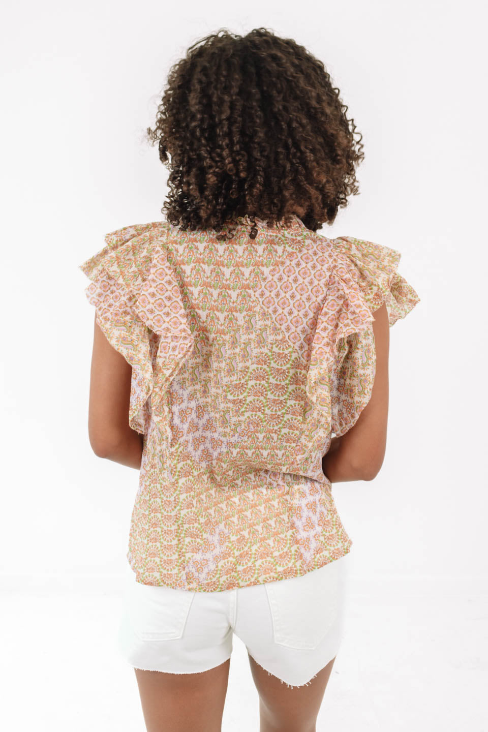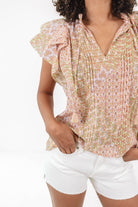 This top is soft, sweet, and full of vintage charm — like a sunset stroll in blouse form. With layered ruffles and a delicate tie neckline, it’s giving effortless romance with just a hint of boho flair. Perfect for days when you want to look like you planned your outfit, even if you didn’t!