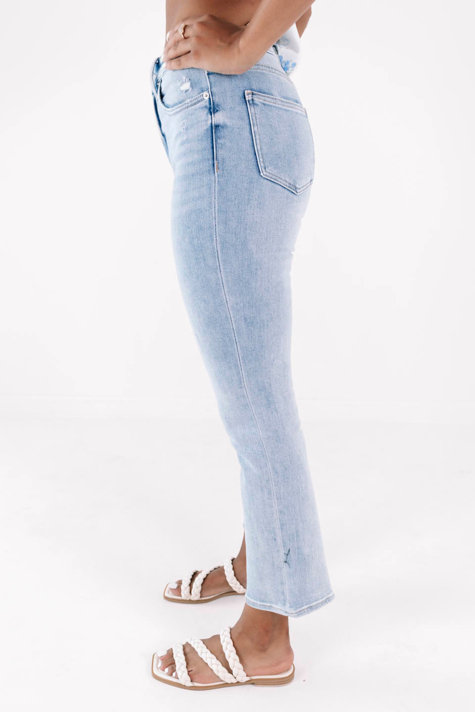 These light-wash jeans are the perfect mix of comfort and style, making them ideal for a casual day out or a spontaneous adventure. With their relaxed fit and ankle-length cut, they're begging to be paired with your favorite sneakers or those fun sandals you love. Slip into these jeans, and you'll feel like you're strutting down a fashion runway, even if it's just to the grocery store!