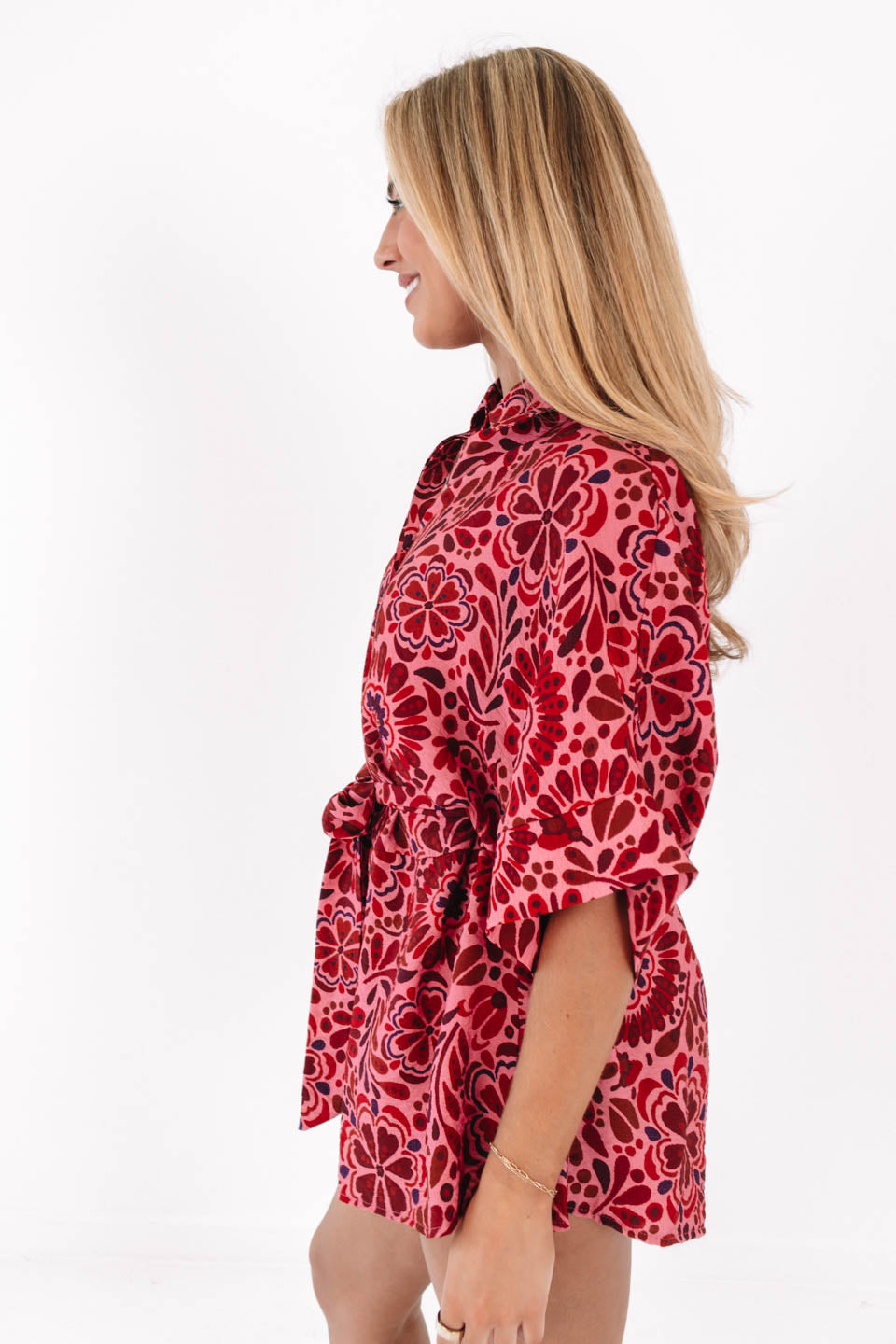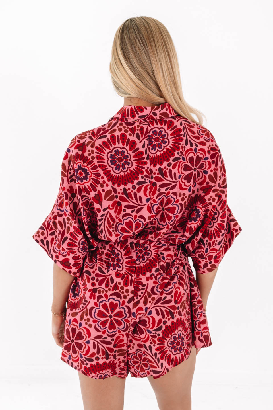 Bold, bright, and blooming with personality — this floral romper is your instant mood booster! With a flattering tie waist and playful pattern, it’s made for brunch dates, rooftop hangs, and dancing in the sunshine. Just add some hoops and a smile, and you’re good to glow!