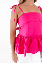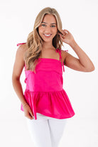 Say hello to sunshine in this playful peplum top, splashed with a hot pink hue that screams summer fun! With adjustable straps and a flattering silhouette, it’s made for everything from farmers' markets to rooftop mocktails. Just add your favorite bottoms and get ready to radiate good vibes all day long!