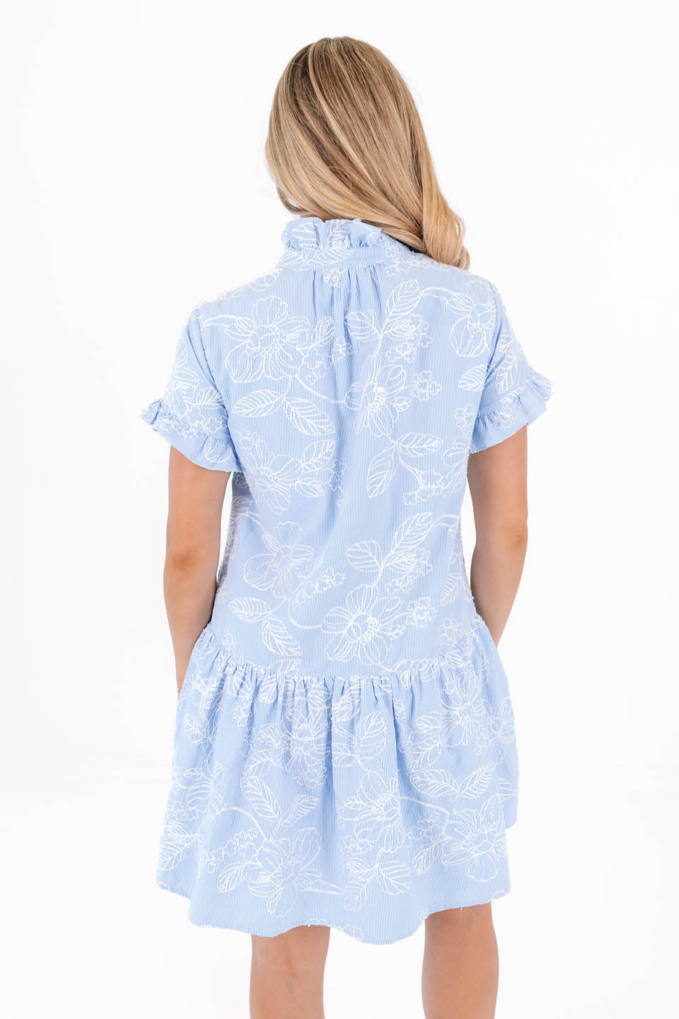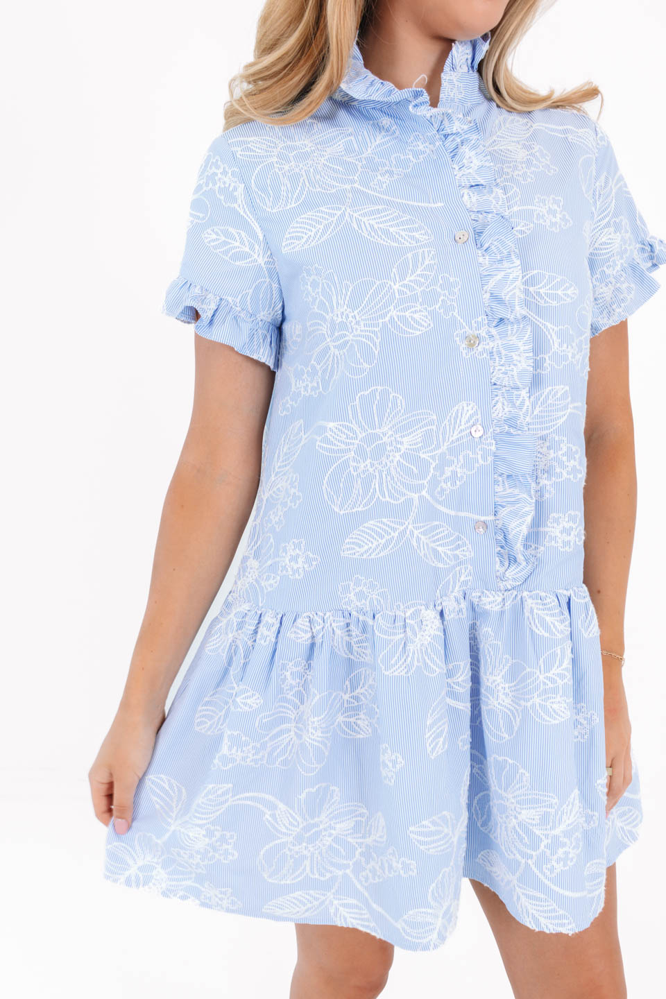 The Calypso Ruffle Button Up Dress - Blue Stripe
