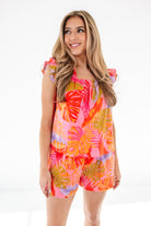 Walk into summer with the perfect top! Pair with The Eden Shorts for a matching set that is perfect for a beach day or day full of shopping! This set looks perfect over a swimsuit or on its own, and its vibrant colors makes these shorts stand out!