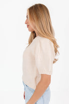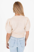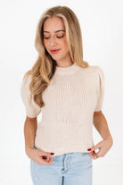 Stay cozy and chic with this cream short-sleeve sweater, the perfect blend of casual and classy. Its cozy knit fabric offers just the right amount of warmth, making it ideal for layering or wearing solo on breezy days. With a soft hue and timeless design, it’s your go-to piece for effortlessly stylish vibes!