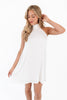This little white dress is the definition of simple elegance with a flirty twist. Its high neckline and breezy silhouette make it perfect for sunny days and spontaneous adventures. Dress it up with heels or keep it casual with sandals—either way, it's a total vibe.