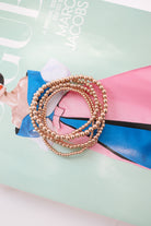 Stack them up or wear them solo—this set of five beaded gold bracelets is the ultimate mix-and-match accessory! With a perfect balance of shimmer and texture, they add just the right amount of golden glow to any outfit. Effortlessly stylish and endlessly versatile, these bracelets are your new go-to for layering in luxury!